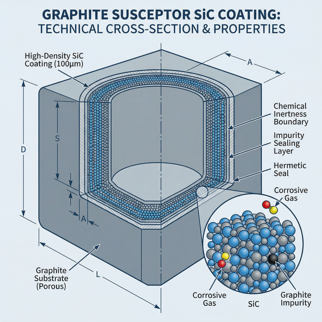 V MOCVD nebo epitaxních procesech grafitové susceptory obvykle vyžadují vysoce výkonné povlaky. Například hustota povlaku z karbidu křemíku (SiC) přímo určuje jeho schopnost utěsnit nečistoty v substrátu.